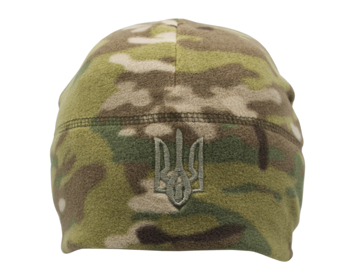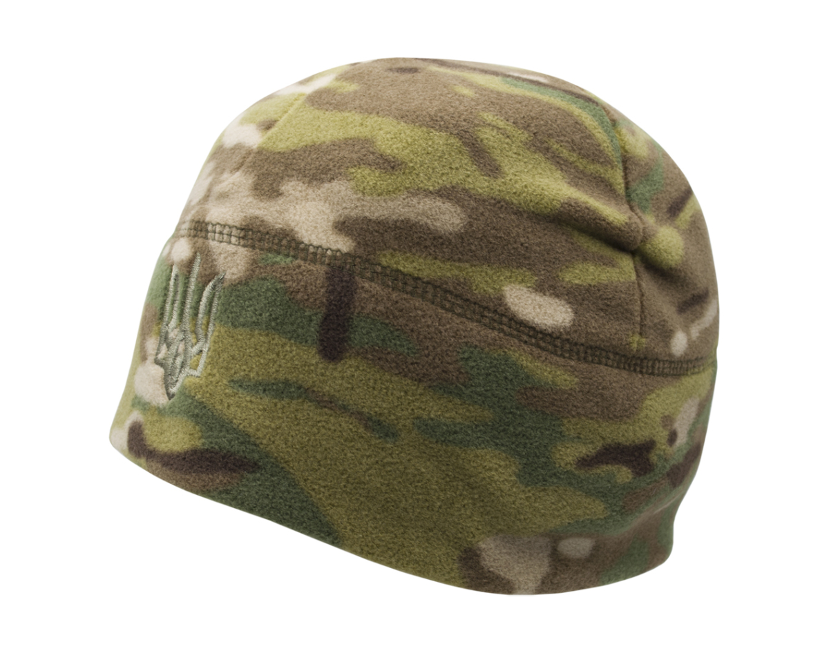 Multicam fleece hat with the coat of arms of Ukraine