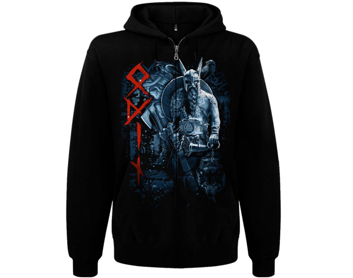 Odin (Runic Circle) Kangaroo Pocket Hoodie with a Zipper