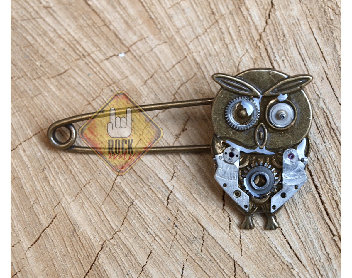 Steampunk brooch in the form of a mechanical owl.