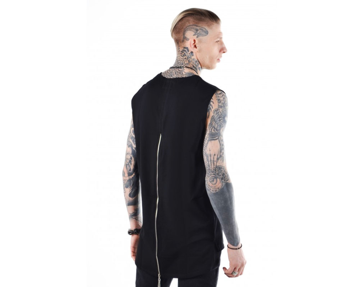 On the back of the tank top quality zipper.
