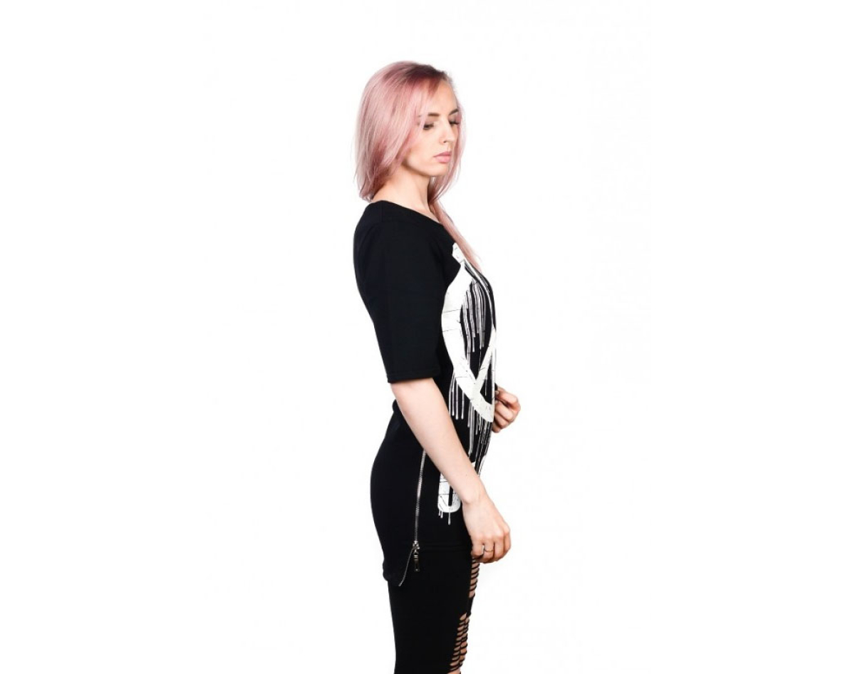 The T-shirt has an original high-quality silk-screen print. There is a functional and high-quality zipper on the sides of the T-shirt.