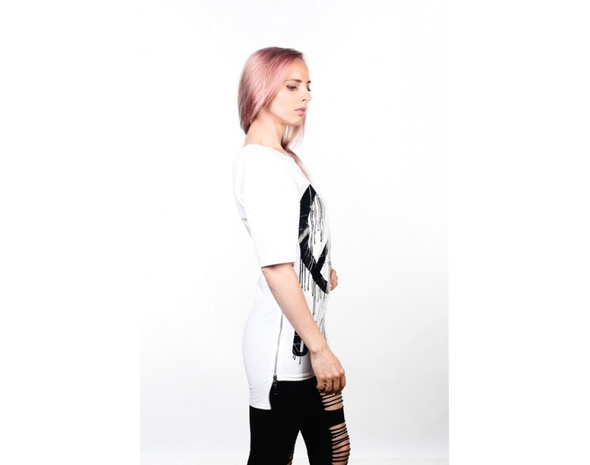 The T-shirt has an original high-quality silk-screen print. There is a functional and high-quality zipper on the sides of the T-shirt.