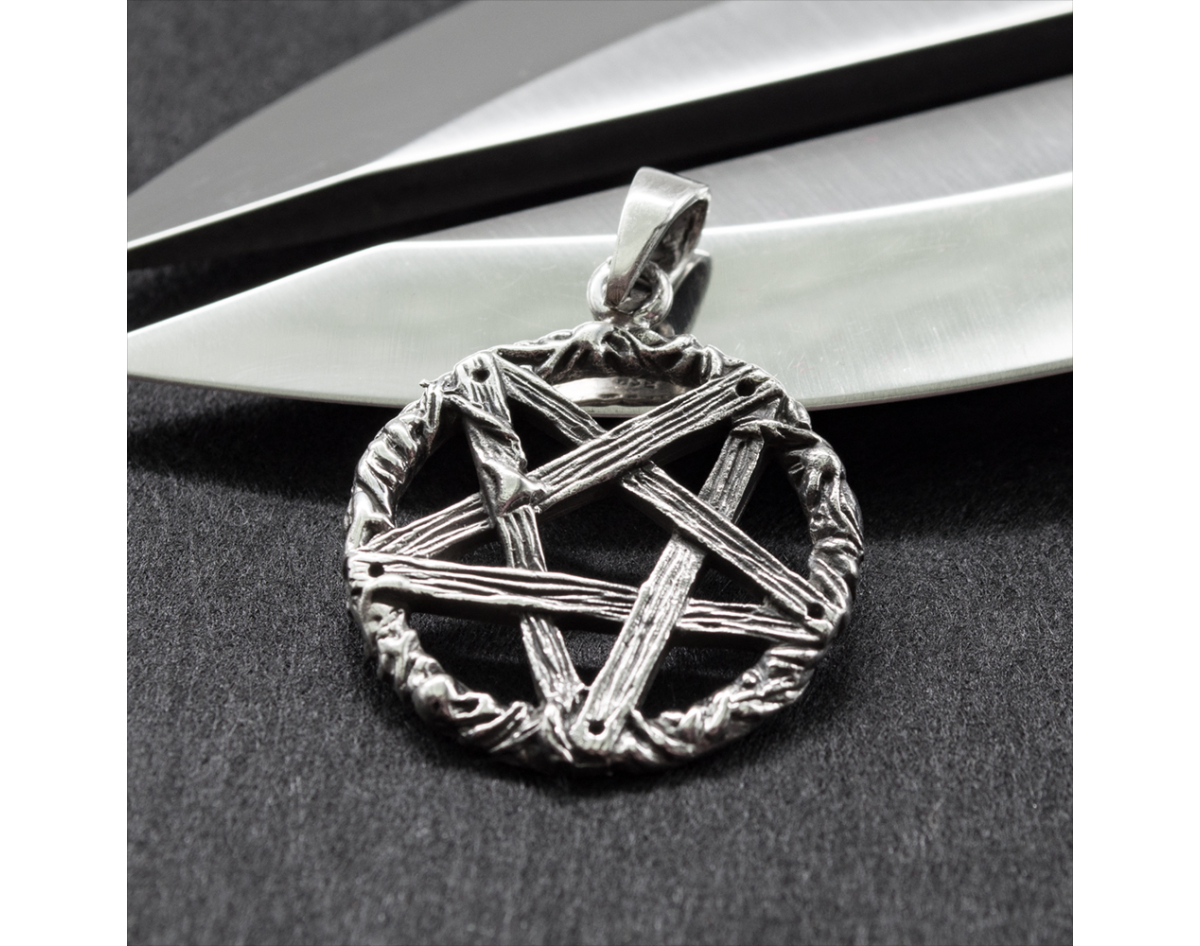 Pendant Inverted Pentagram "made of wood" (silver, 925 assay value) (sp-146)