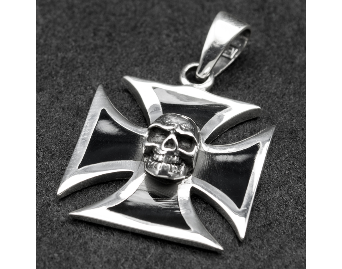 Pendant Iron cross with skull (silver, 925 sample) (sp-180)