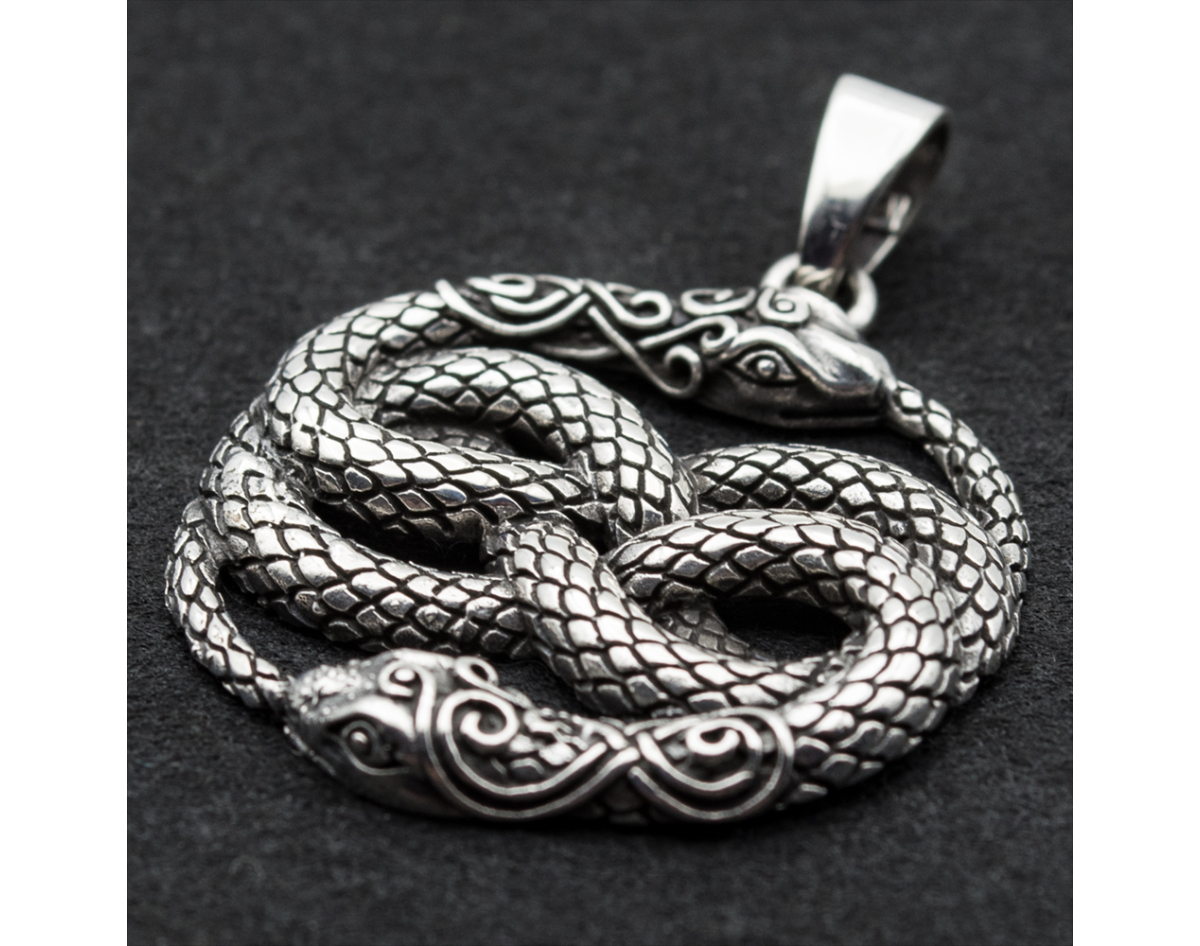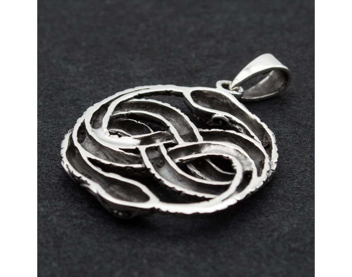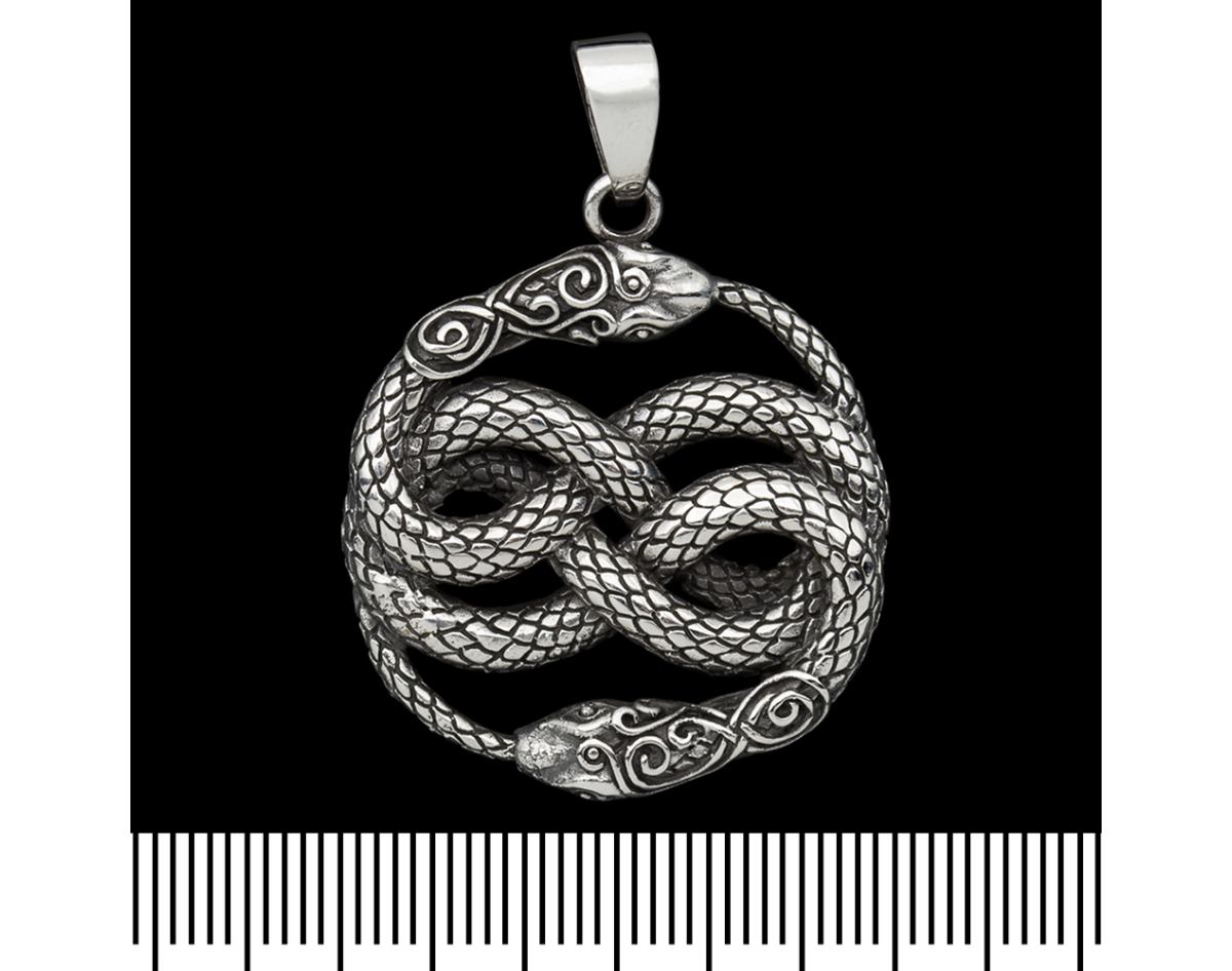 Pendant Ouroboros two snakes with patterns (silver, 925 assay value) (sp-163)