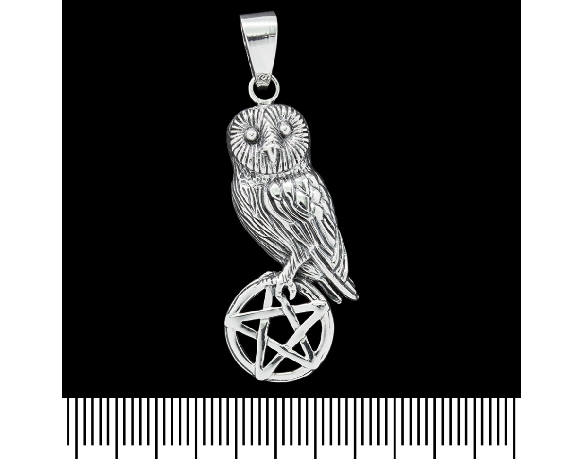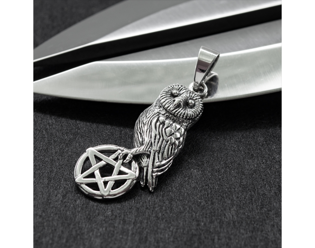 Pendant Owl with pentagram (silver, 925 assay value) (sp-142)