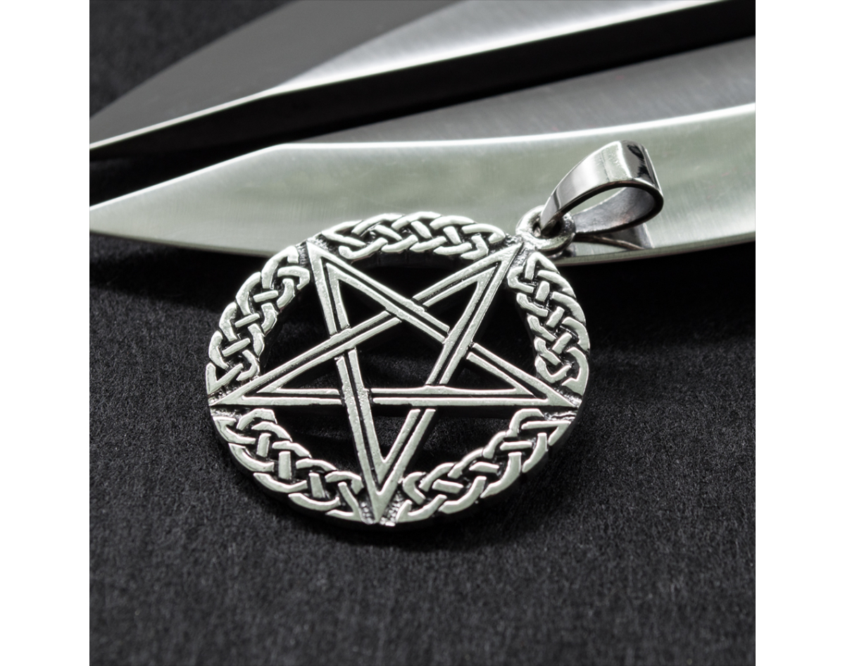 Pendant Pentagram in a braided circle (silver, 925 assay value) (sp-141)