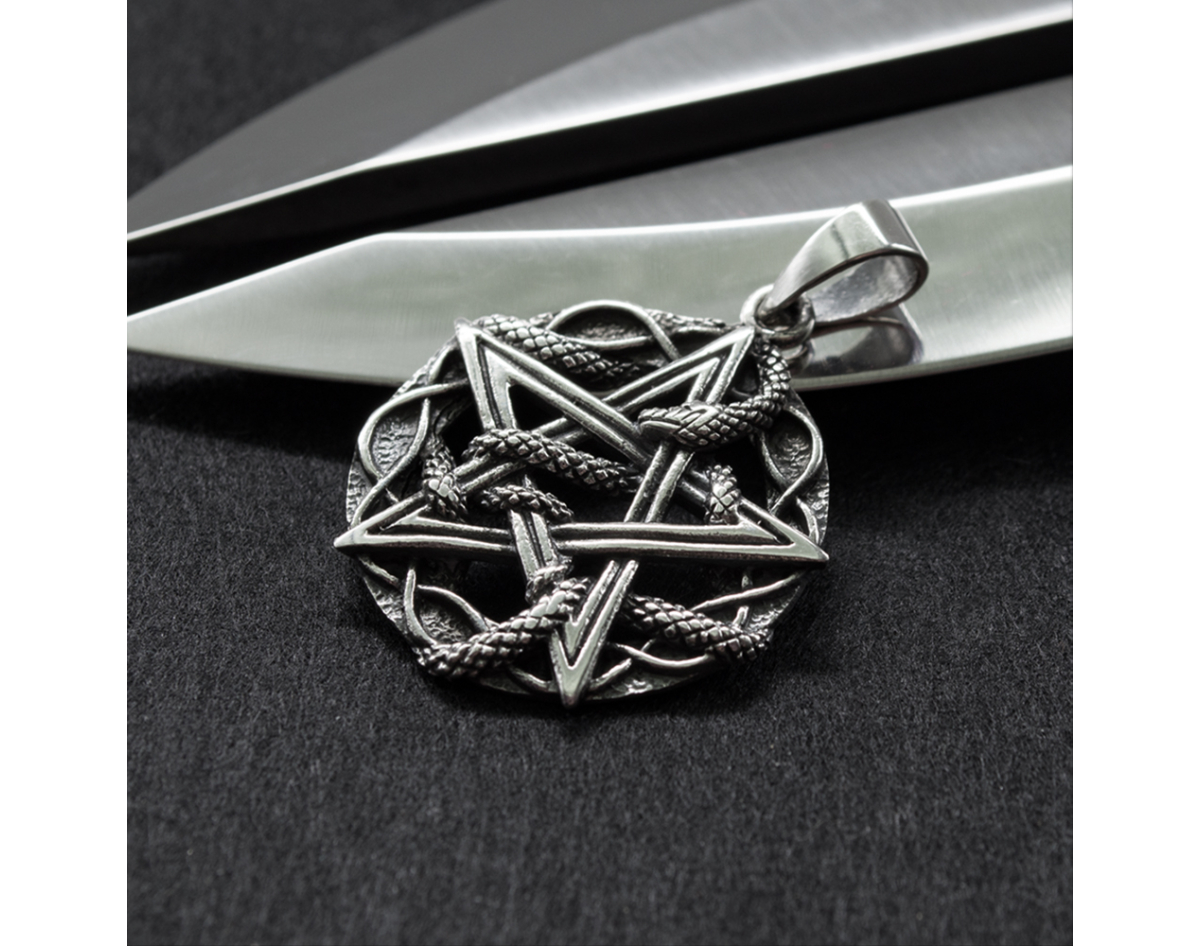 Pendant Pentagram with a snake (silver, 925 assay value) (sp-137)