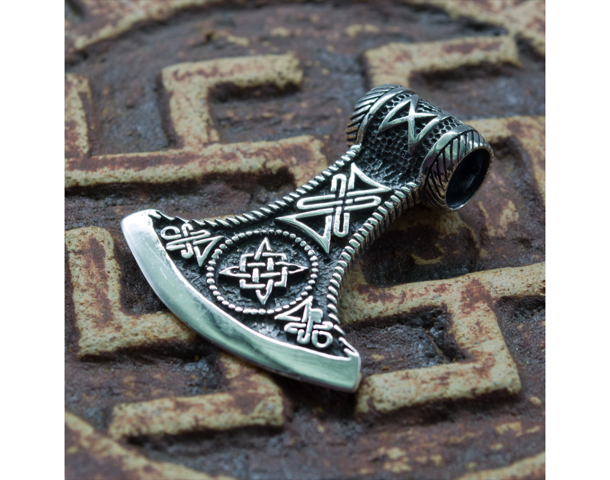 Pendant of Ax of Perun with Star of Svarog (silver, 925) (sp-125) 10.25 grams, height 38.5 mm, width 34 mm, eye size for chain 7 mm