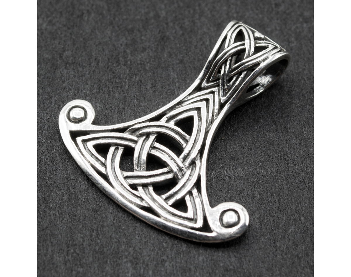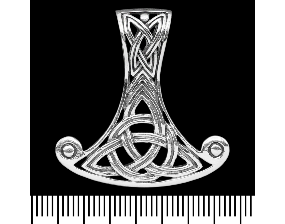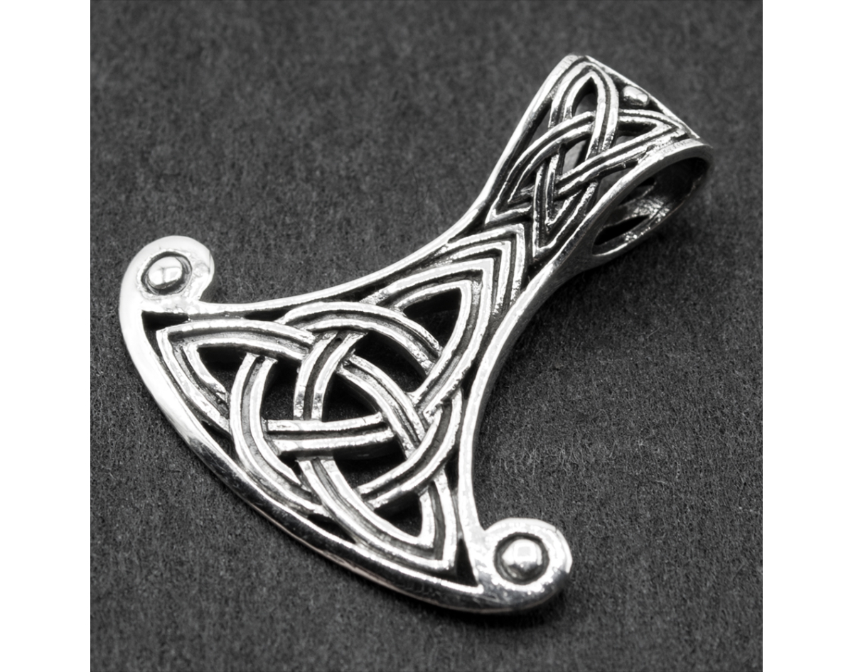 Pendant of Perun's Axe with Triquetra (silver, 925 assay value) (sp-211) 7.35 grams, height 35 mm, width 33 mm, size of the eye for the chain 8x5 mm