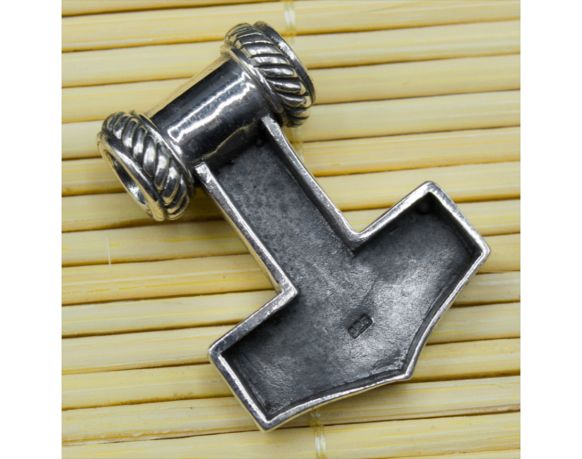 Pendant Thor's Hammer with Scandinavian patterns (silver, 925 assay value) (sp-124)