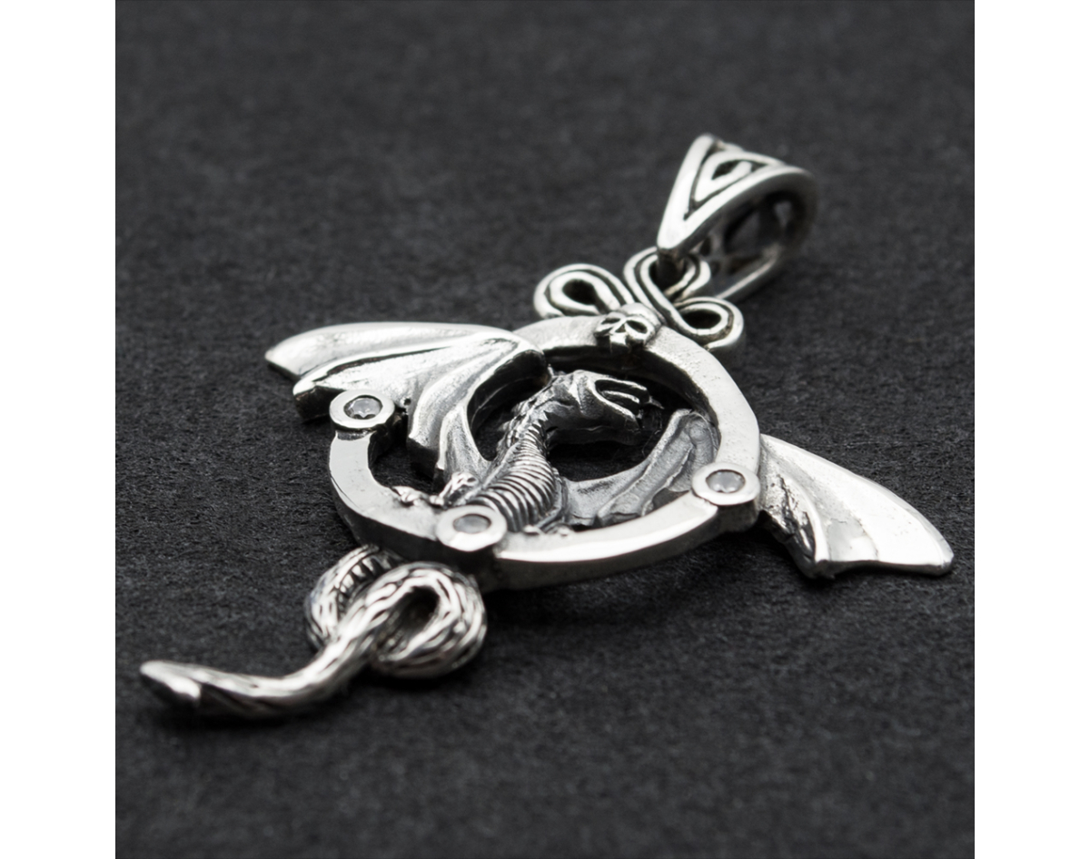 Pendant Winged dragon in a ring (silver, 925 assay value) (sp-161)