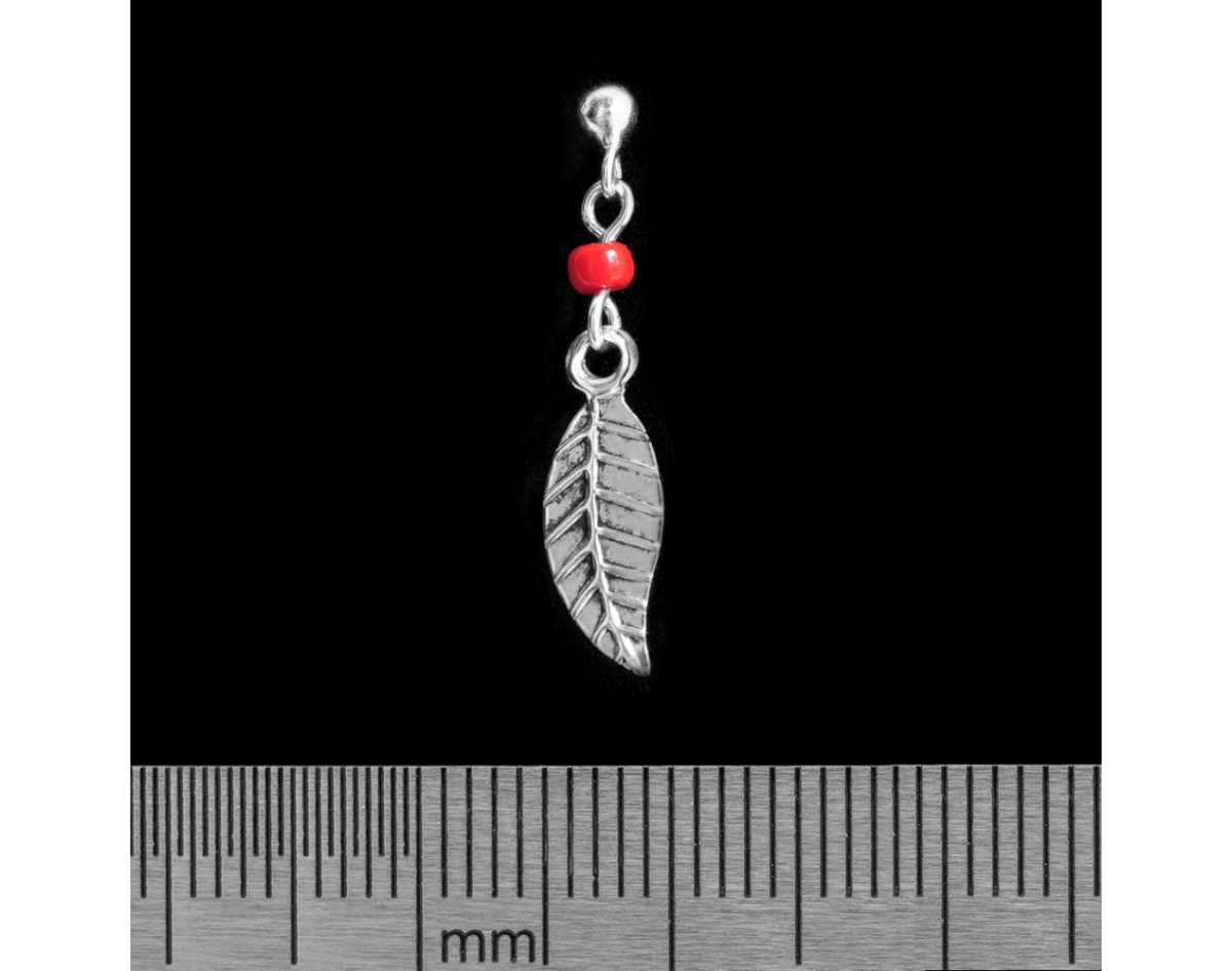 Pendant with Leaf and Red Beads (925 Silver) Stud Earring