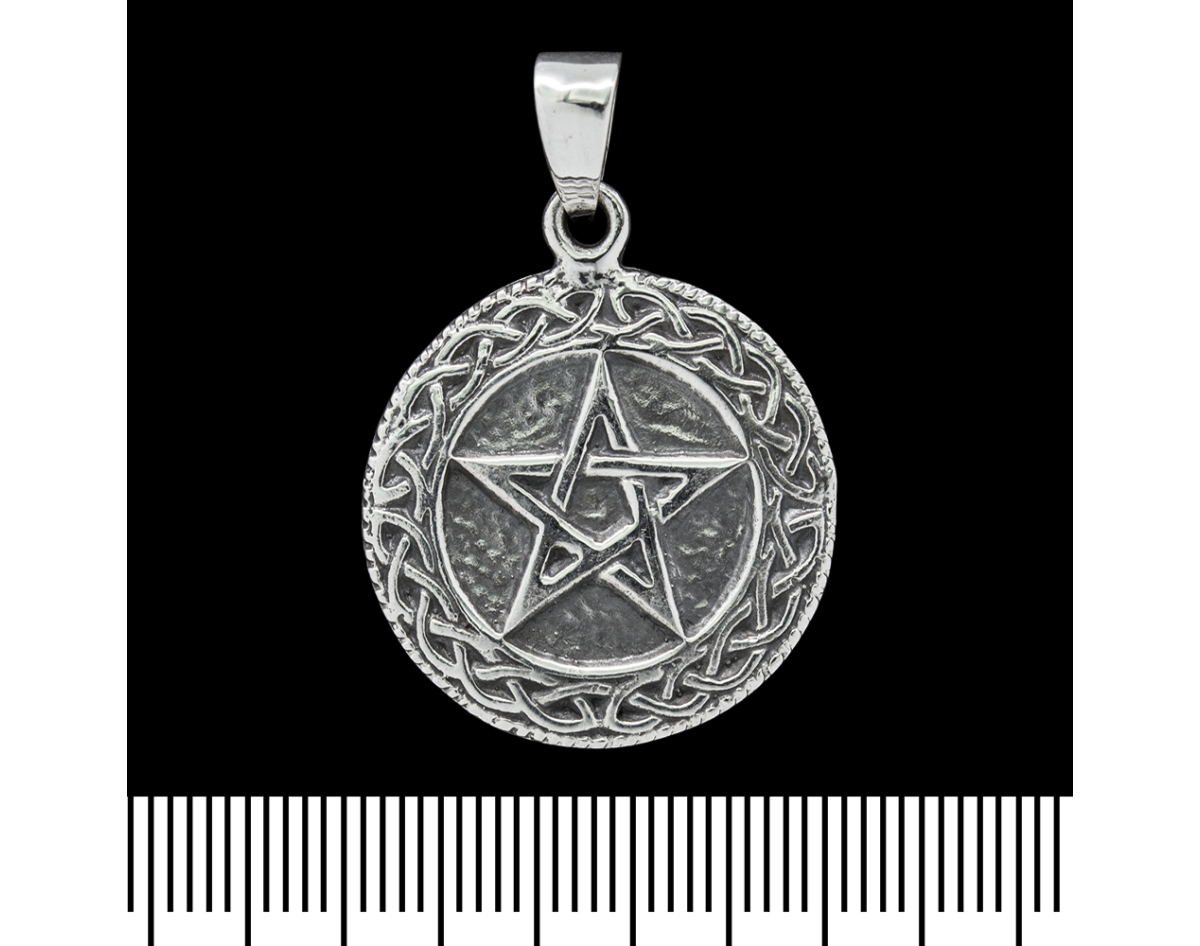 Pentagram Medallion Pendant in a Braided Circle (silver, 925 assay value) (sp-134)