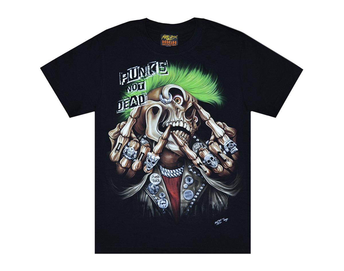 Punk's Not Dead (Skeleton with a Green Mohawk) Glows in the Dark T-Shirt