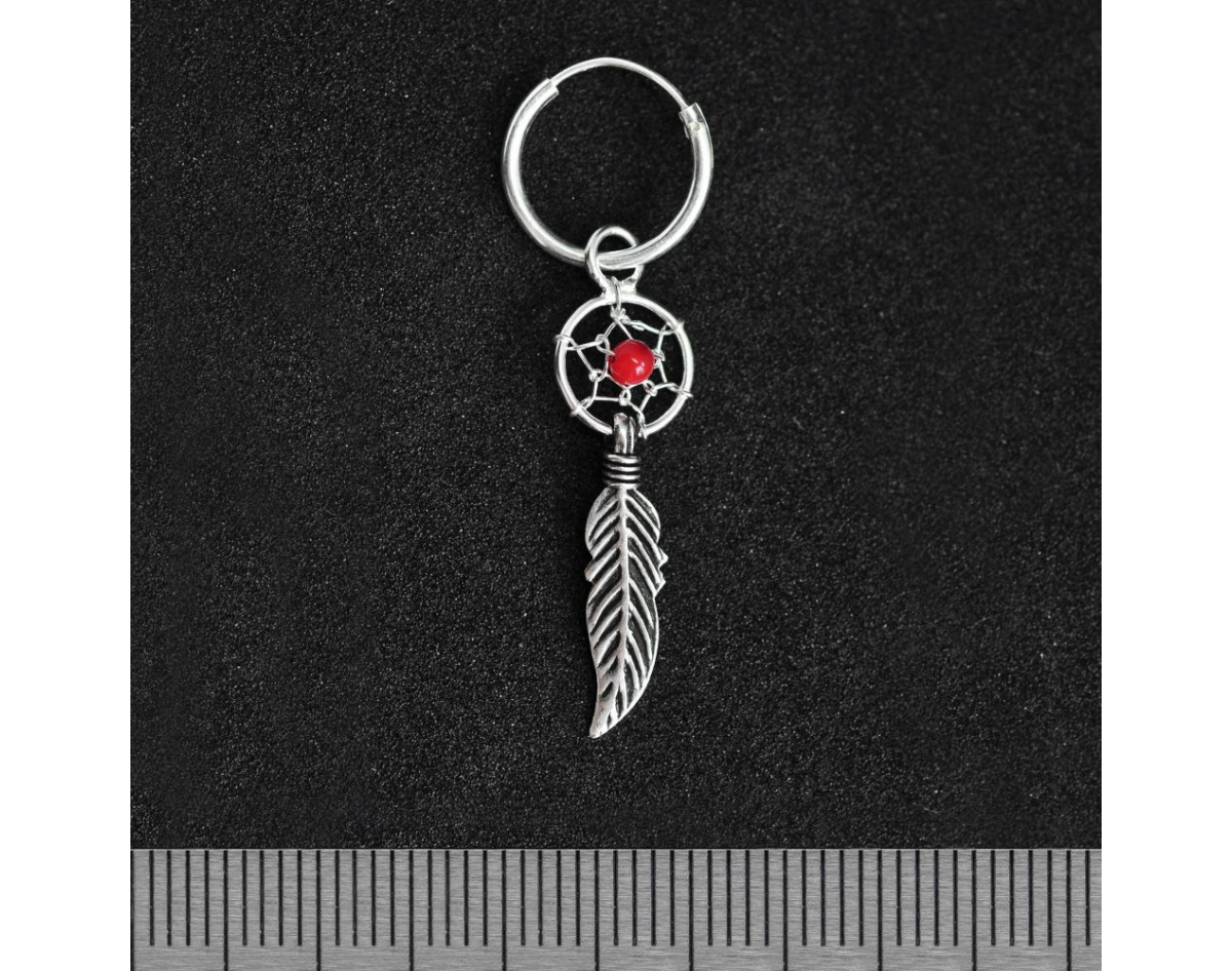 Ring with a Dream Catcher, Red Stone (eas-072) Earring