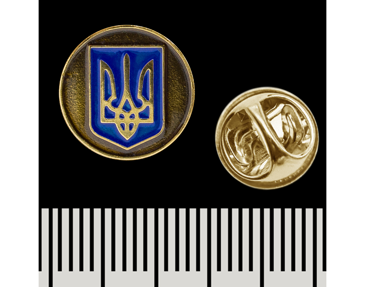 Round pin (icon) Coat of arms of Ukraine on a bronze background pnua-030