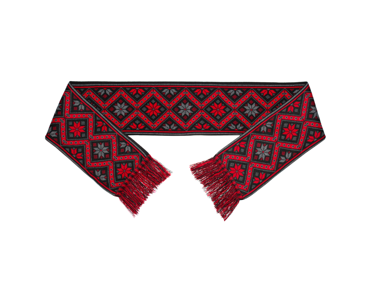 Scarf Ukrainian embroidery - Star of the Mother (red-black)