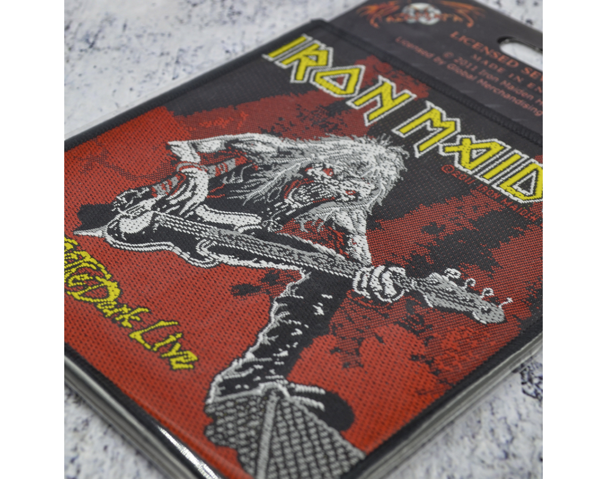 Sew on patch IRON MAIDEN - FEAR OF THE DARK LIVE in blister (ofpb-086) Size - 10х11 cm This product is an official licensed merch. Fabric patch with high quality and detail. The edges of the patch are finished with overlock, making the product look as neat as possible. The patch is sewn on. If necessary, you can sew Velcro onto the patch to secure it to clothing, a backpack, etc. where there is already space for such accessories. Fabric composition: polyester. Each patch has its own individual packaging. This is the perfect gift for true fans!