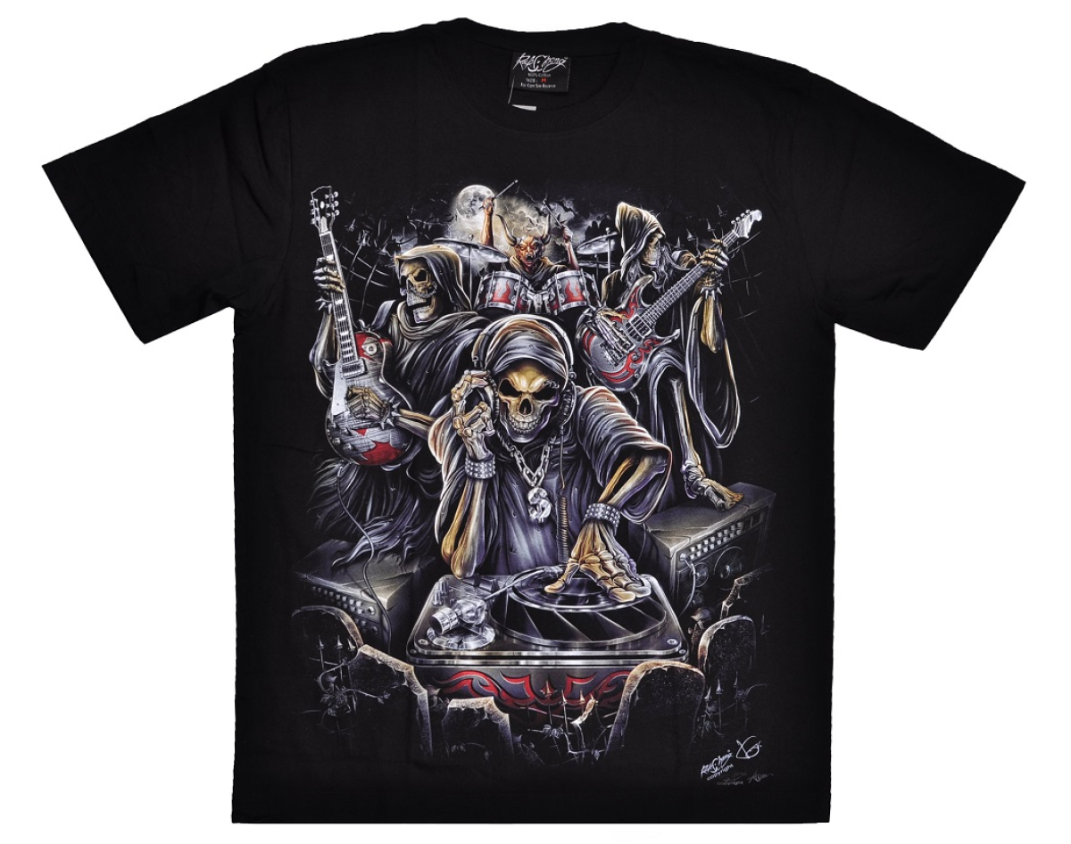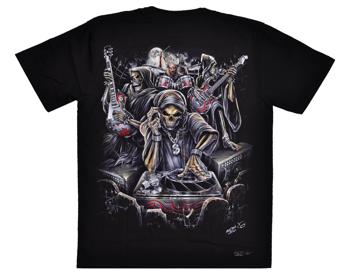 Skeleton DJ and Rock Band (Glows in the Dark) T-Shirt