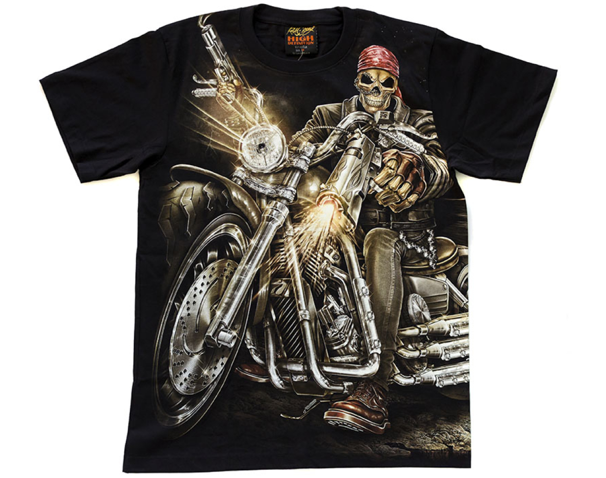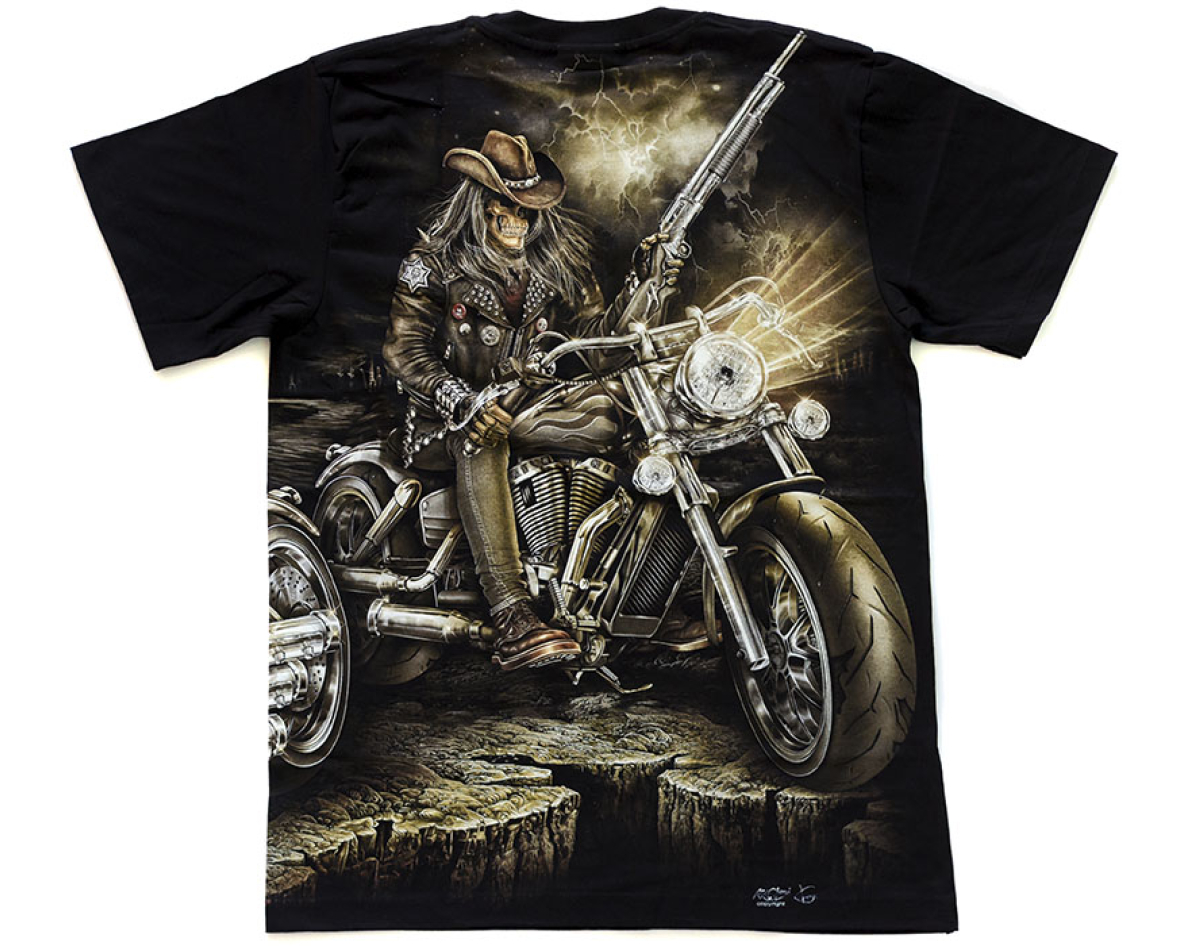 Skeleton on a Motorcycle with a Gun (Glows in the Dark) T-Shirt