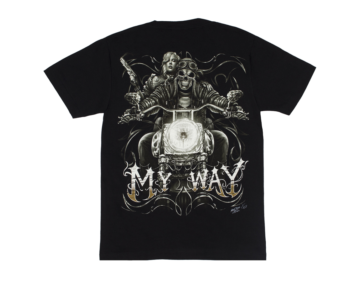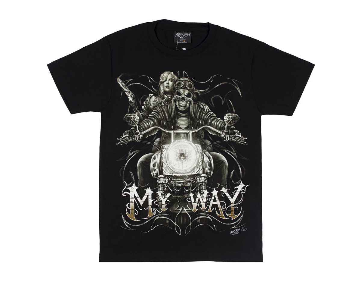 Skeleton with a Girl on a Motorcycle (Glows in the Dark) T-Shirt
