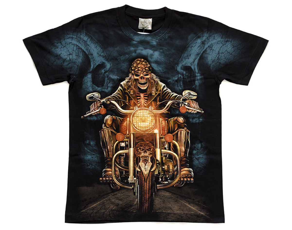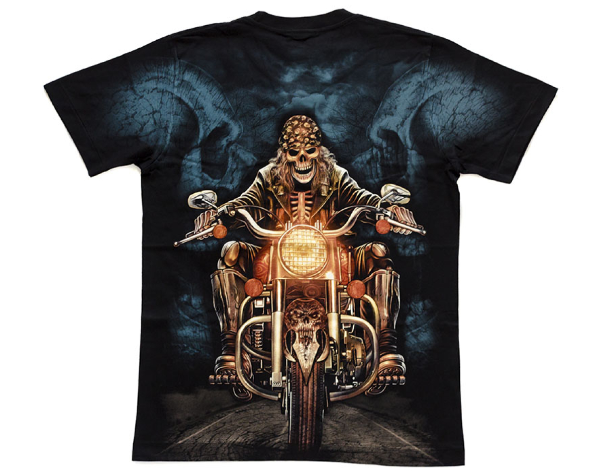 Skeleton with Bandana on a Motorcycle T-Shirt