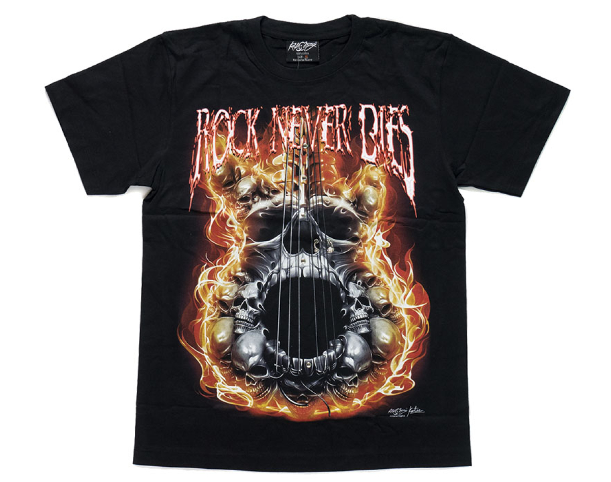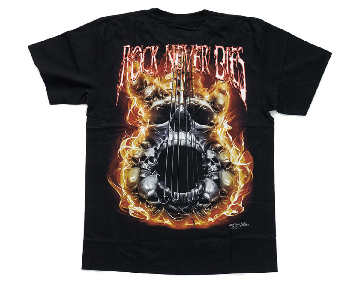 Skull-Guitar "Rock Never Dies" (3D, Glows in the Dark) T-Shirt