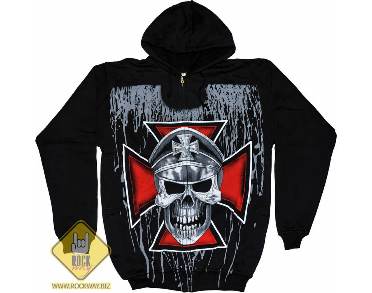Skull in a Cap on the Background of the Maltese Cross Kangaroo Pocket Hoodie