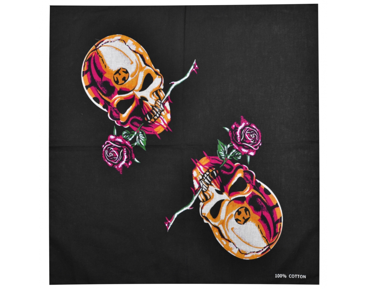 Skull with a Rose (Alchemy) on a Black Background Bandana