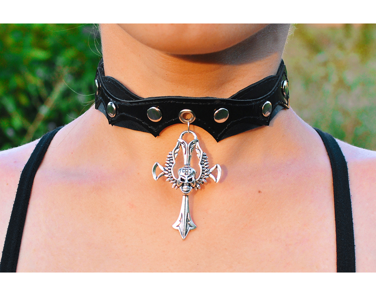 Skull with Wings on the Cross Pendant (ar-002) Collar