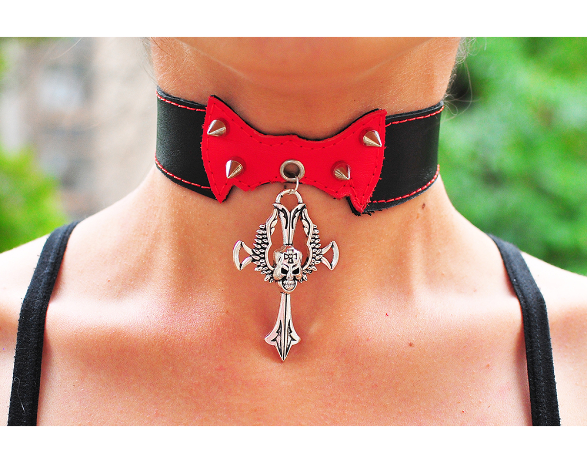 Skull with Wings on the Cross Pendant (ar-003) Collar