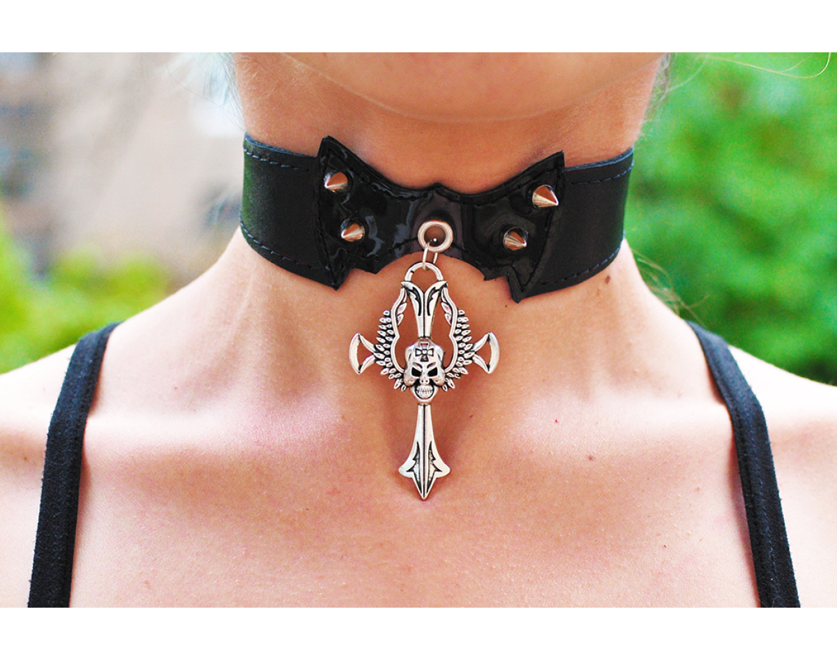 Skull with Wings on the Cross Pendant (ar-004) Collar