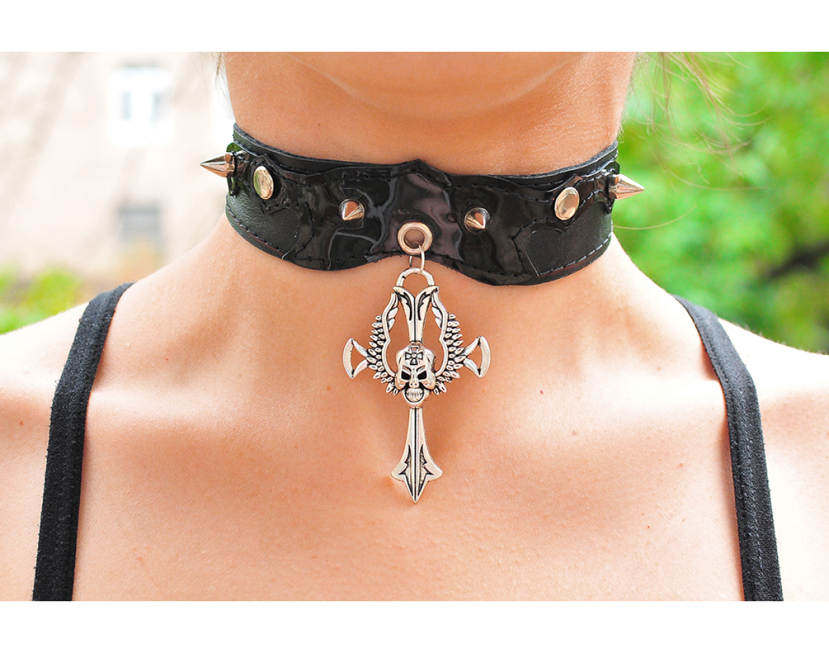 Skull with Wings on the Cross Pendant (ar-006) Collar