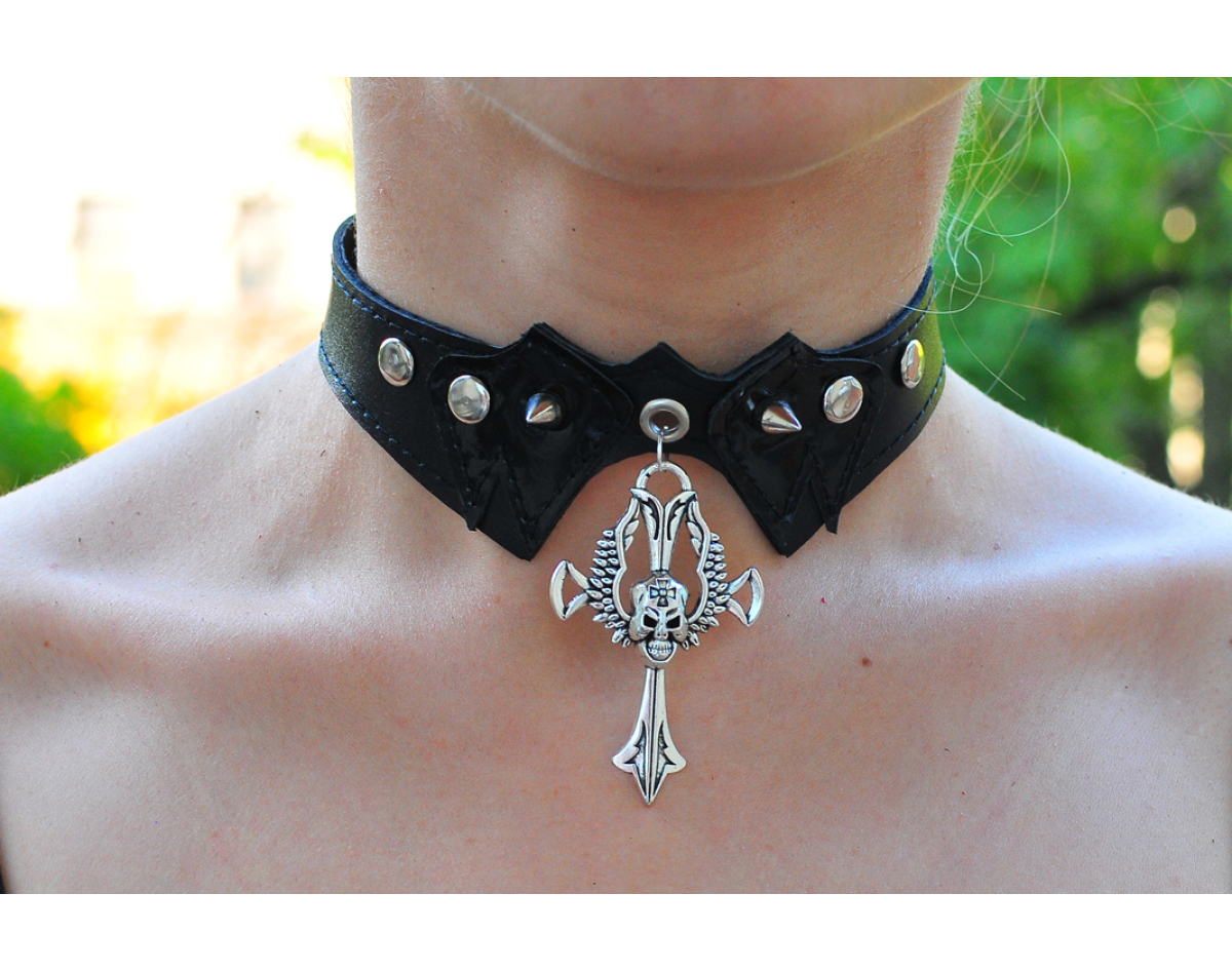 Skull with Wings on the Cross Pendant (ar-009) Collar