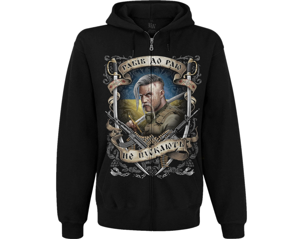 Slaves are not allowed to heaven (Ukrainian warrior) Kangaroo Pocket Hoodie with a Zipper Ukraine