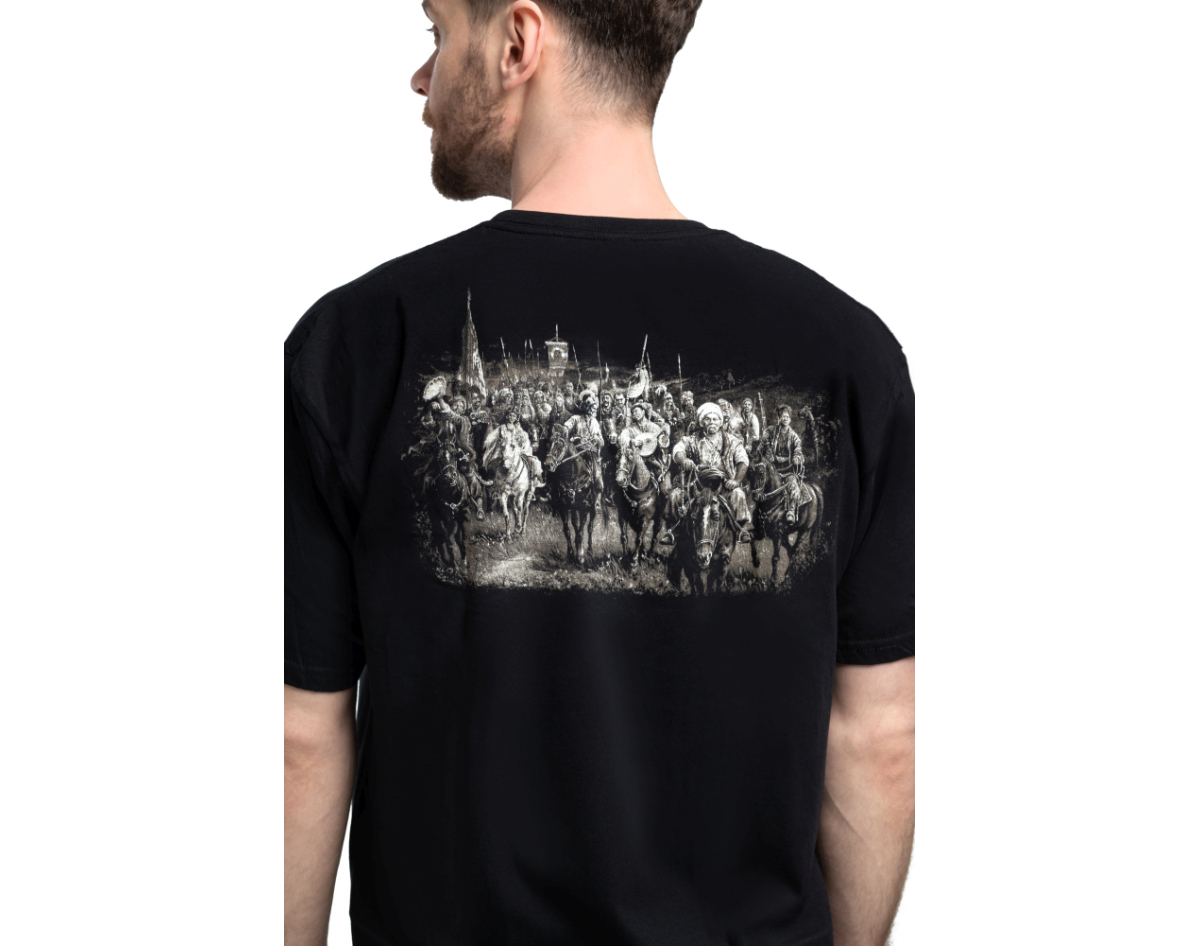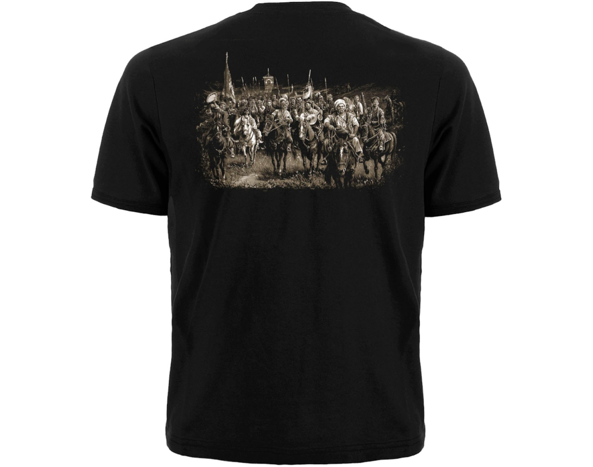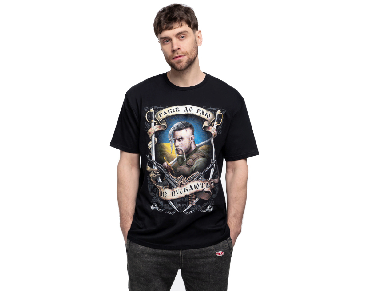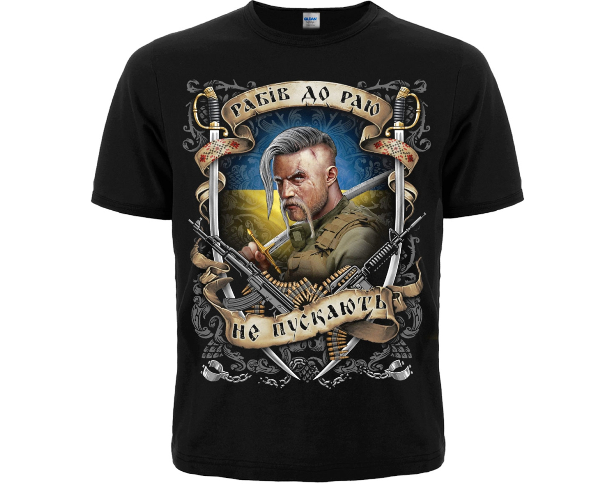 production: Gildan; fabric: 100% cotton (quality seams, neck does not stretch). Density 160 g / m², the picture is applied by the method of silk screen printing (does not crack, does not deteriorate due to washing, does not fade); picture: plastisol paint of EU production. Wash at a temperature of up to 30°