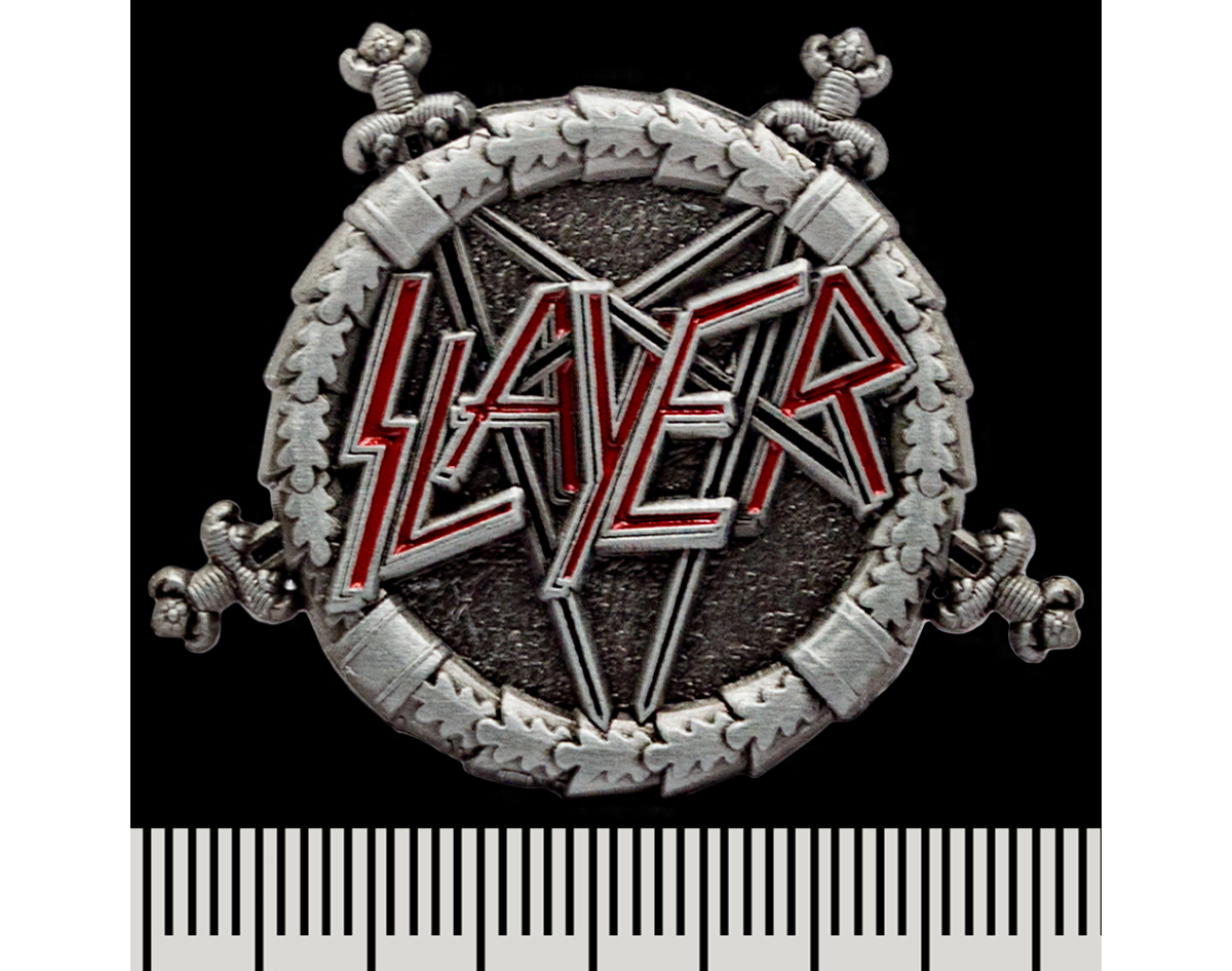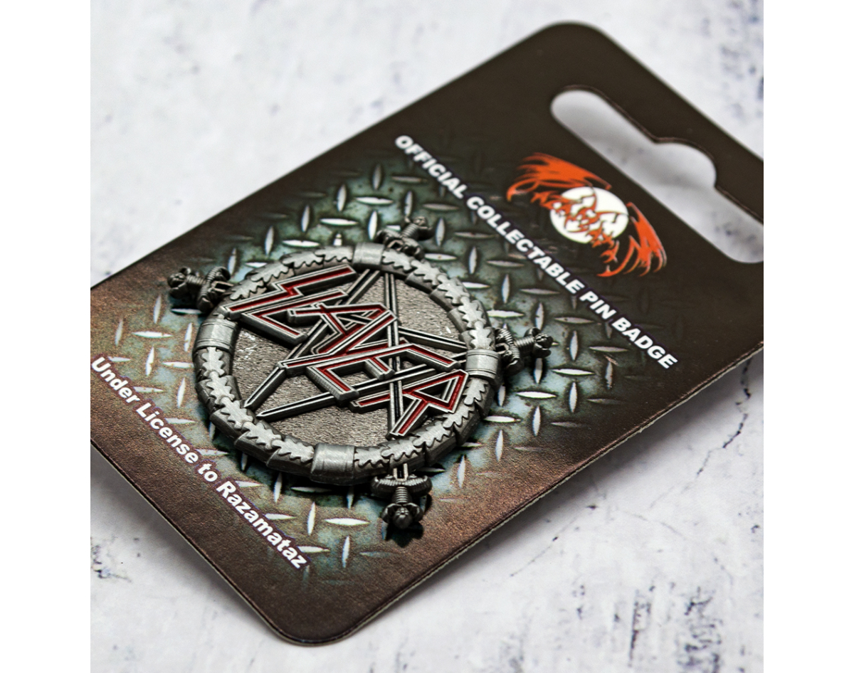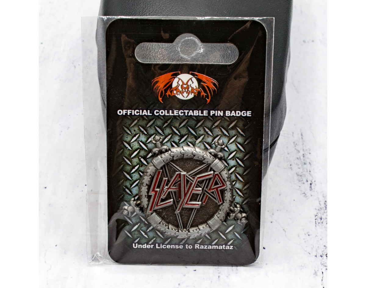 Slayer (logo on the pentagram) Pin (pnol-006) This product is officially licensed merchandise (Officially Licensed). The pin is made of a metal alloy. Thanks to two needles on the back side, you will be able to fix it securely, while it will not twist. Each pin is packaged in a blister pack, has a presentable appearance, it is an ideal gift for true fans of the band. Made in Great Britain
