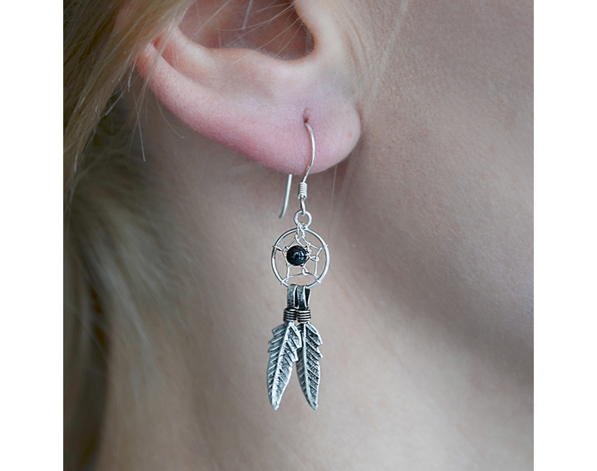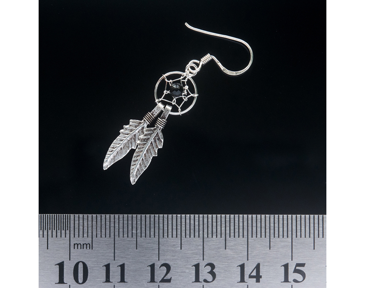 Small Dream Catcher with Black Stone (eas-046) Earring
