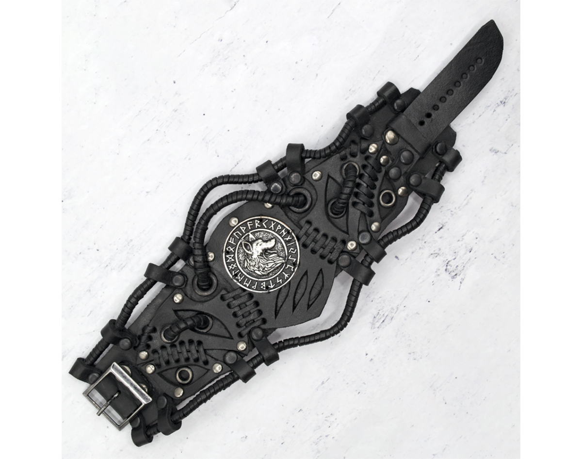 Steampunk Bracelet Wolf in Runic Circle (bsp-72)
