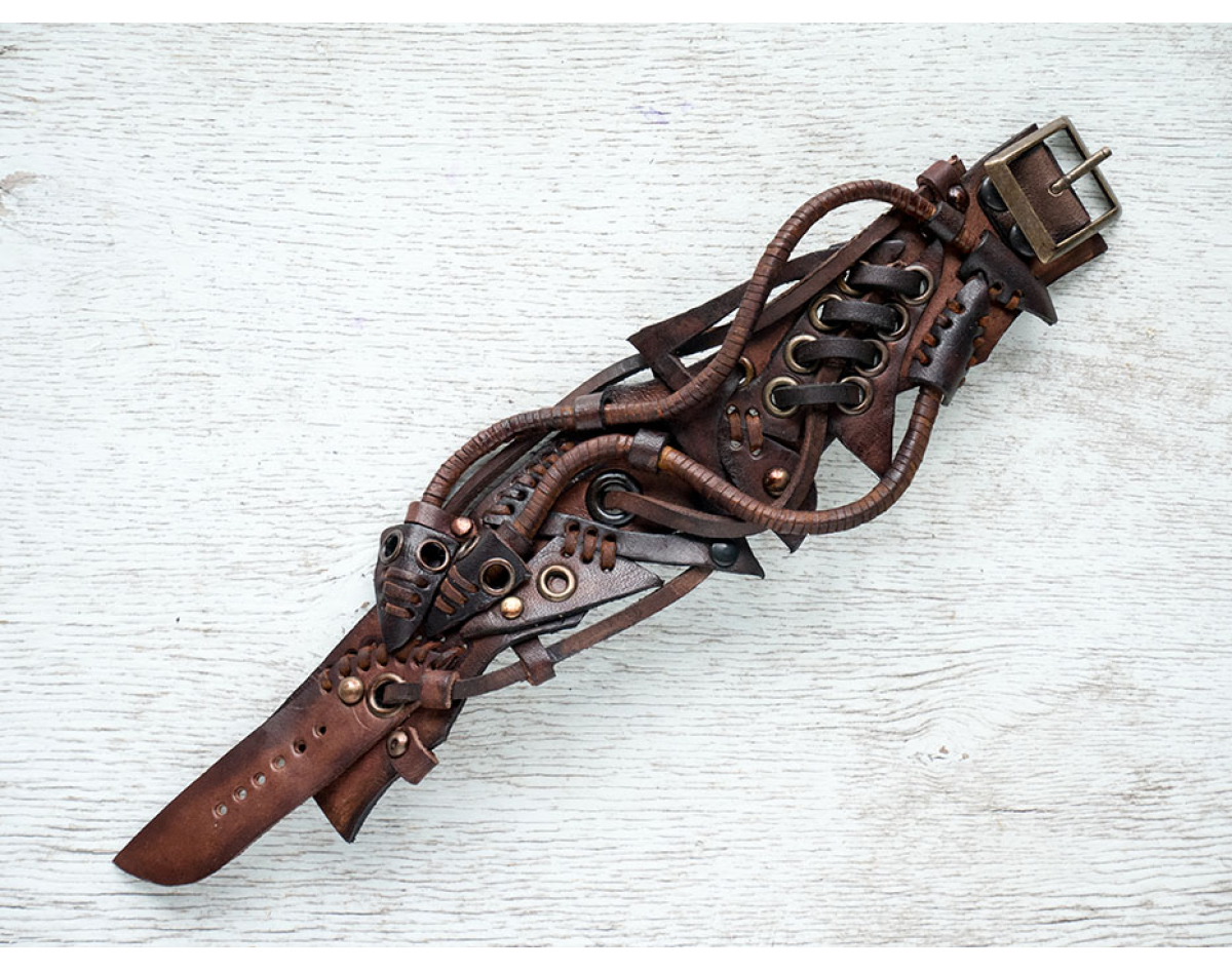 Exclusive bracelet in steampunk style with reliable fasteners.