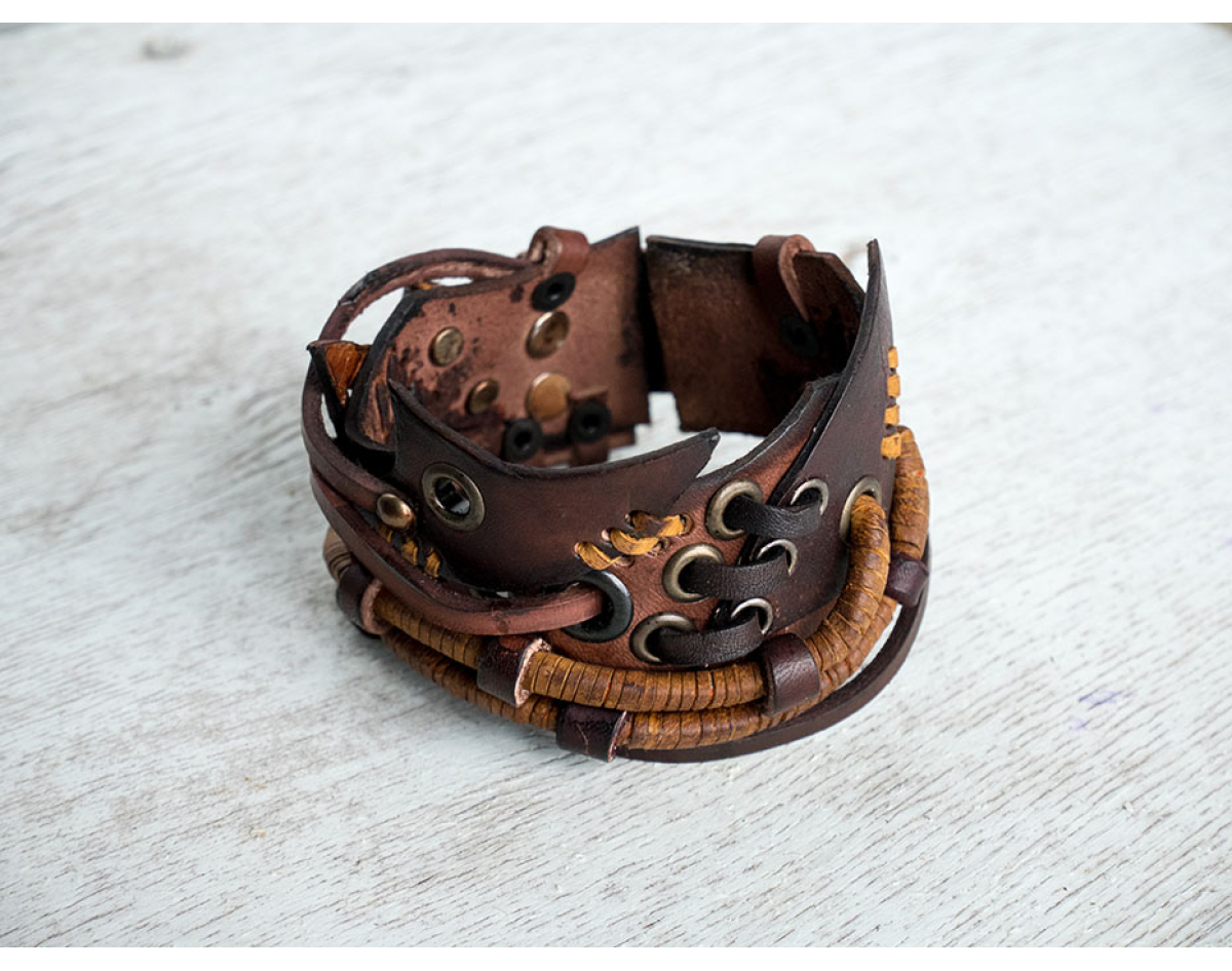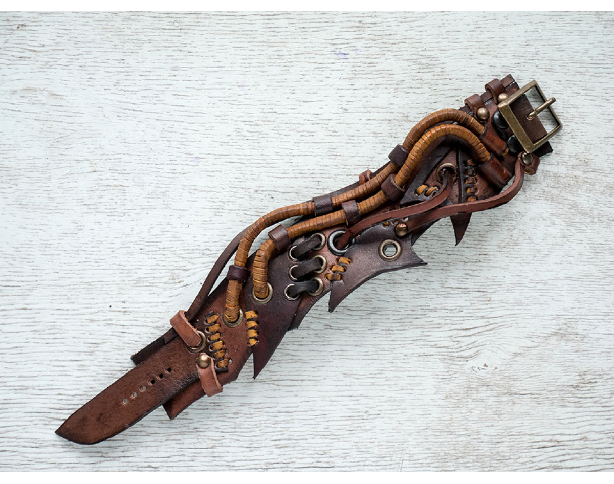 Exclusive bracelet in steampunk style with reliable fasteners.