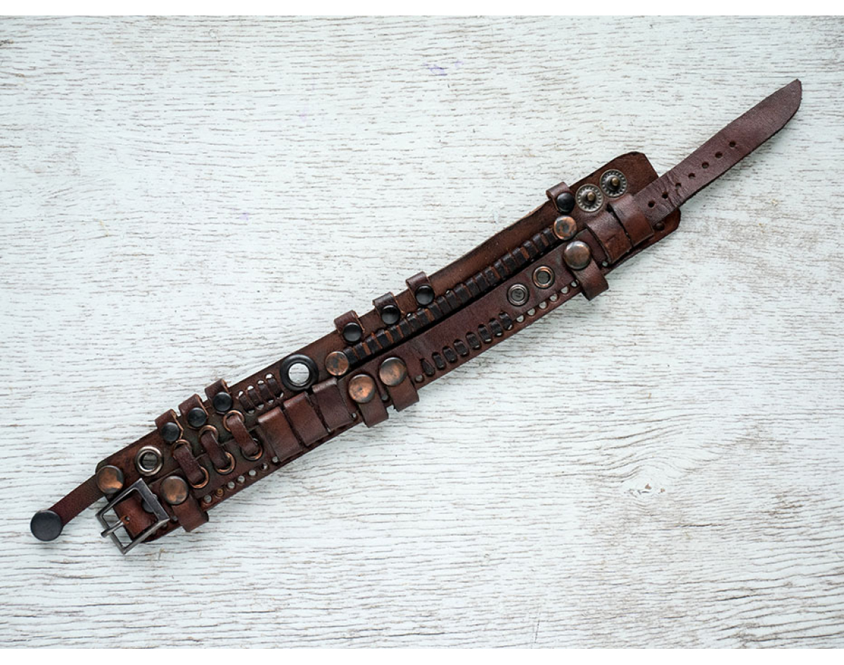 Exclusive bracelet in steampunk style with reliable fasteners.