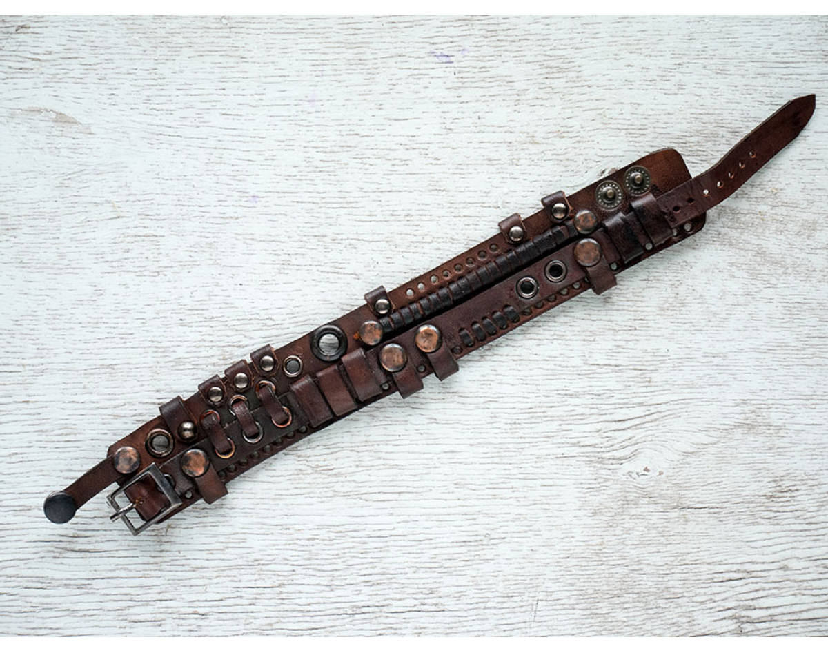 Exclusive bracelet in steampunk style with reliable fasteners.