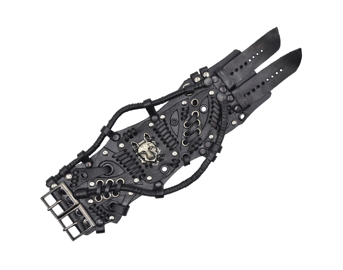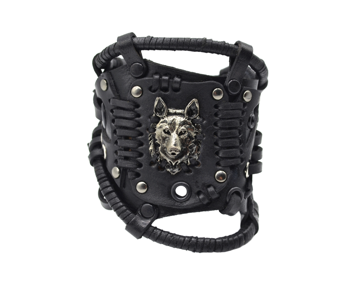 Steampunk (bsp-51) Black Bracelet Wolf's Head