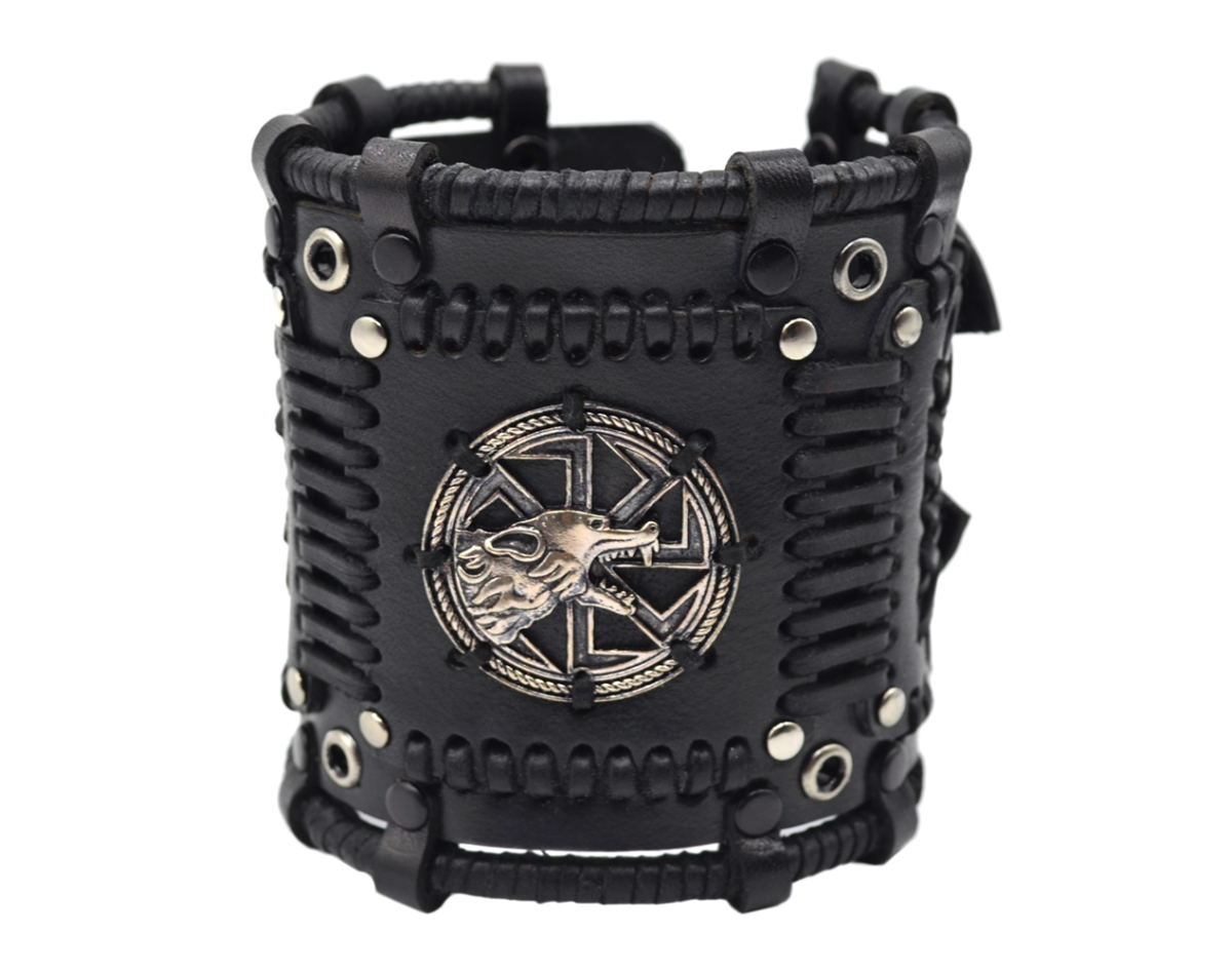 Steampunk (bsp-58) Black Bracelet Kolovrat with a wolf