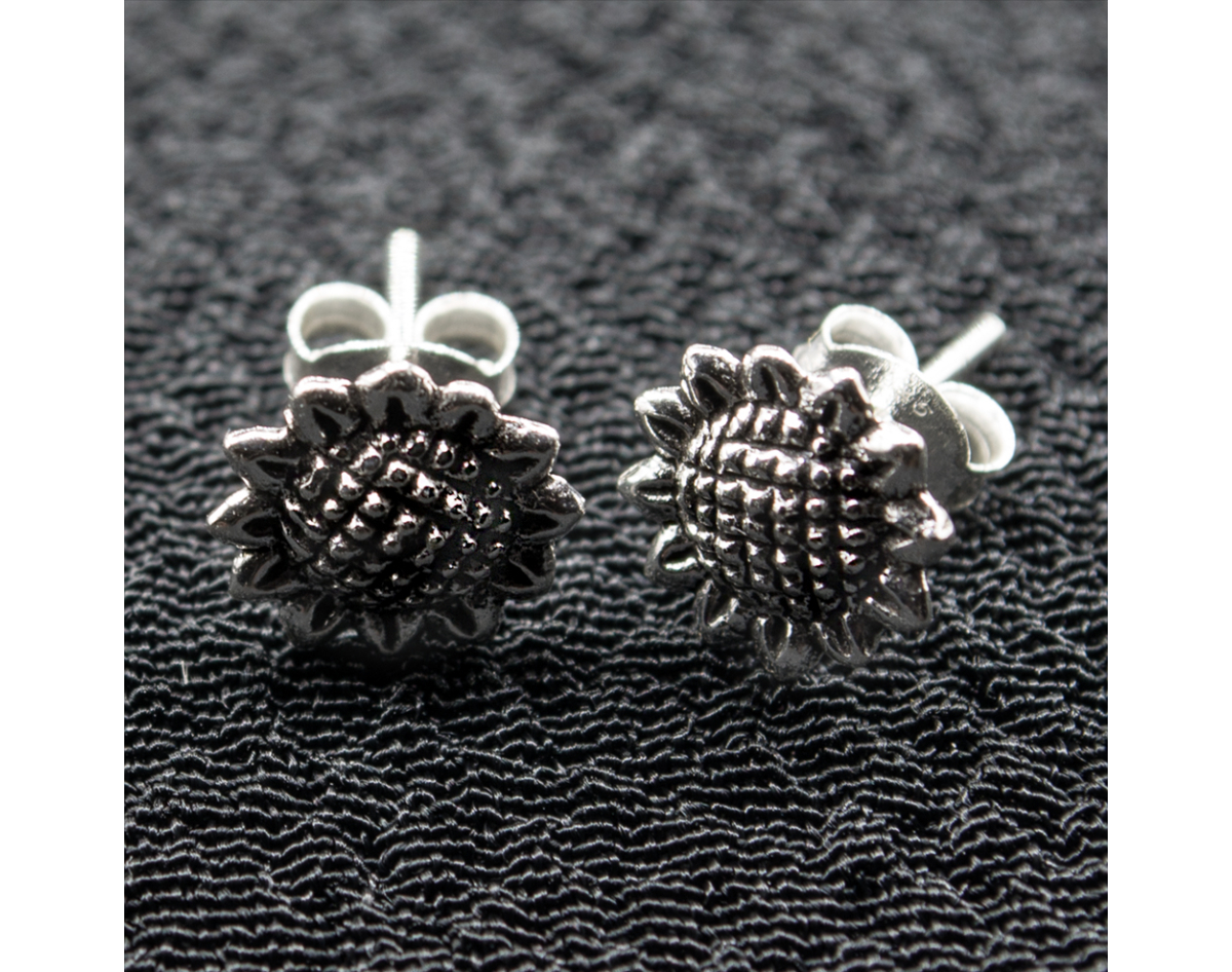 Sunflower stud earring (silver, 925 sterling) (sn-050)