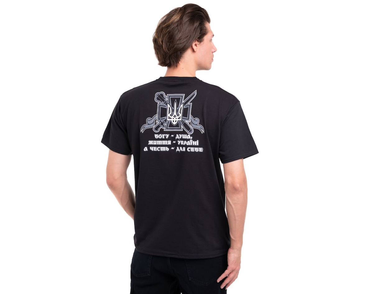 production: Gildan; fabric: 100% cotton (quality seams, neck does not stretch). Density 160 g / m², the picture is applied by the method of silk screen printing (does not crack, does not deteriorate due to washing, does not fade); picture: plastisol paint of EU production. Wash at a temperature of up to 30°