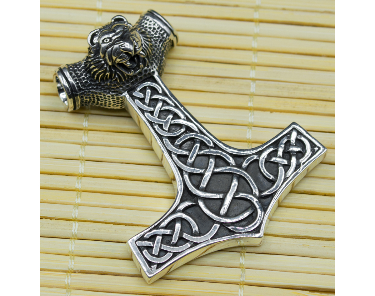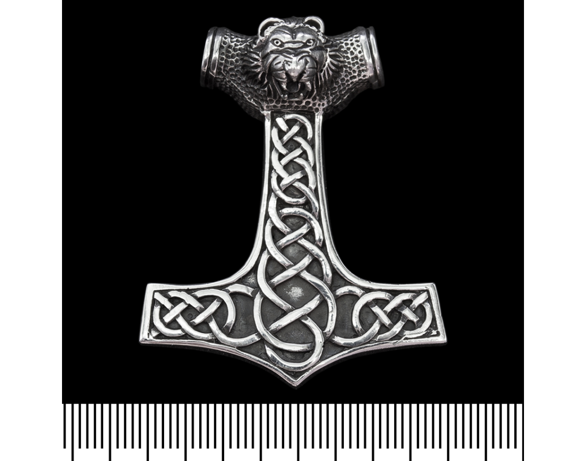 Thor's Hammer Pendant with a Lion's Head (Silver, 925) (sp-121)