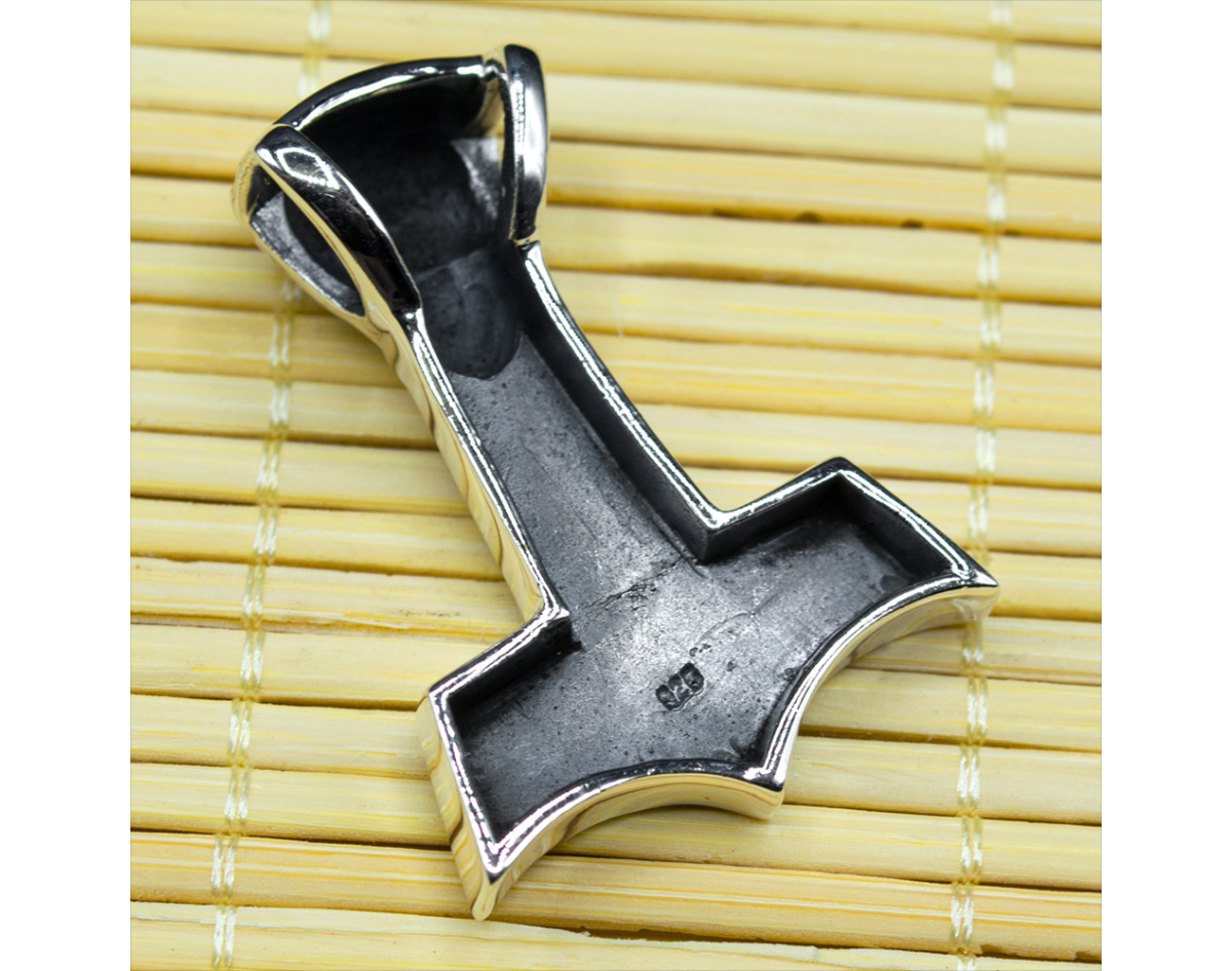 Thor's Hammer Pendant with a Pattern (Silver, 925) (sp-116)